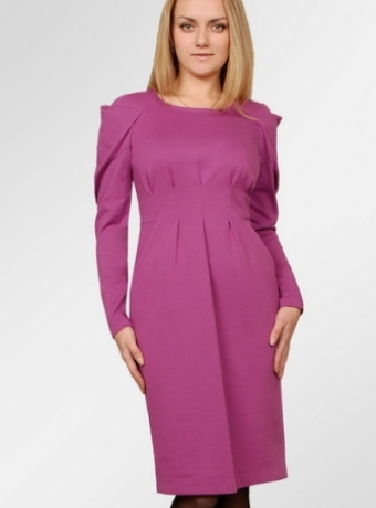 Яркое платье с полуприлегающим силуэтом. Рукава оформлены с помощью защипов, подобный элемент продублирован на поясе платья. Идеальный вариант для повседневного гардероба.